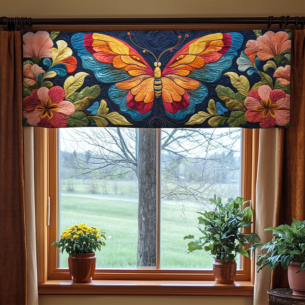 Floral Butterfly WX1405019CL Quilted Valance