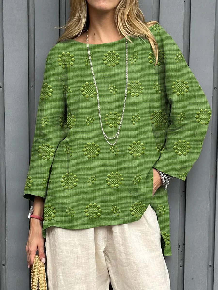 Women's Vintage Floral Pattern Art Print Casual Cotton Linen Shirt
