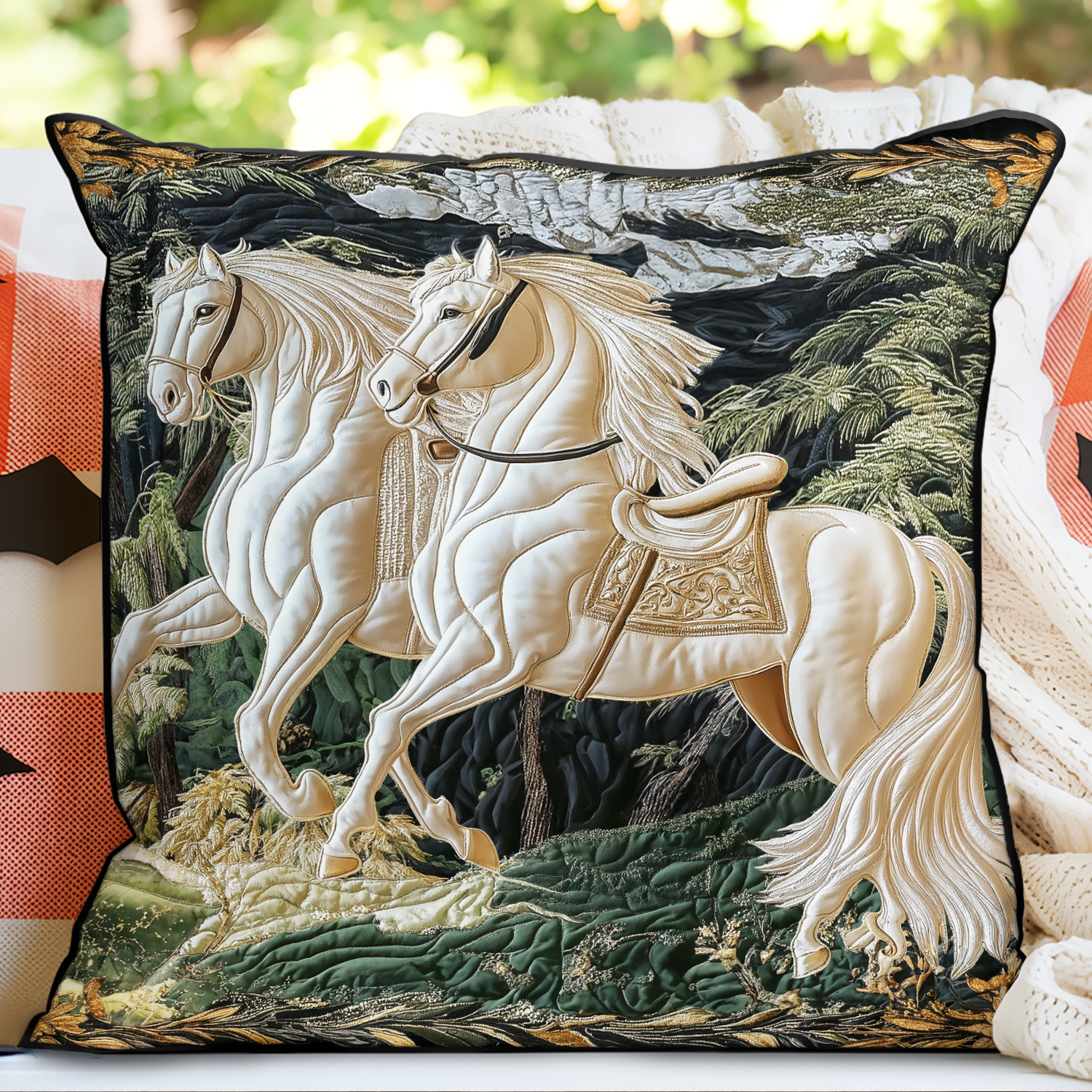Floral Majesty Horse Quilted Pillow Case NCU0TL023