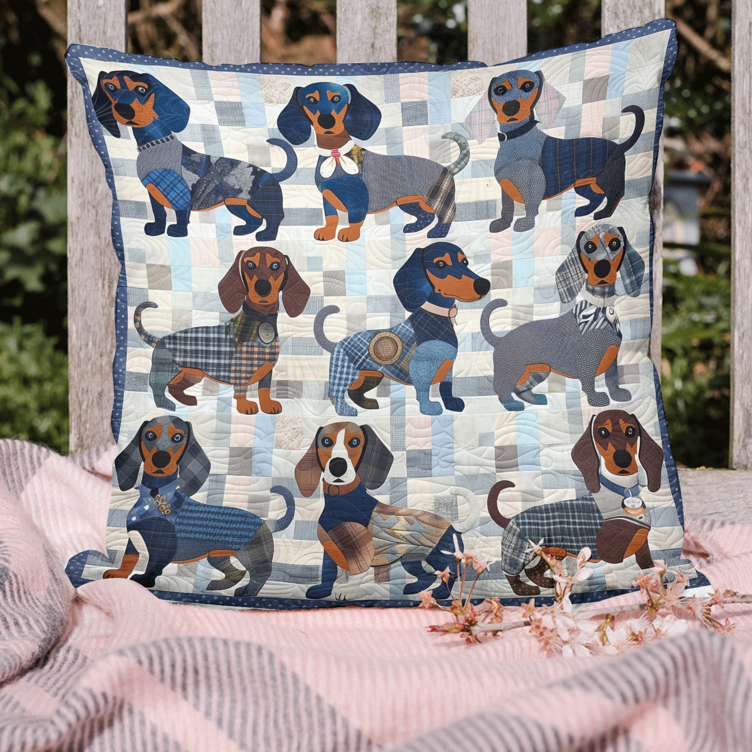 Blue Dachshund Quilted Pillow Case NCU0TH2120
