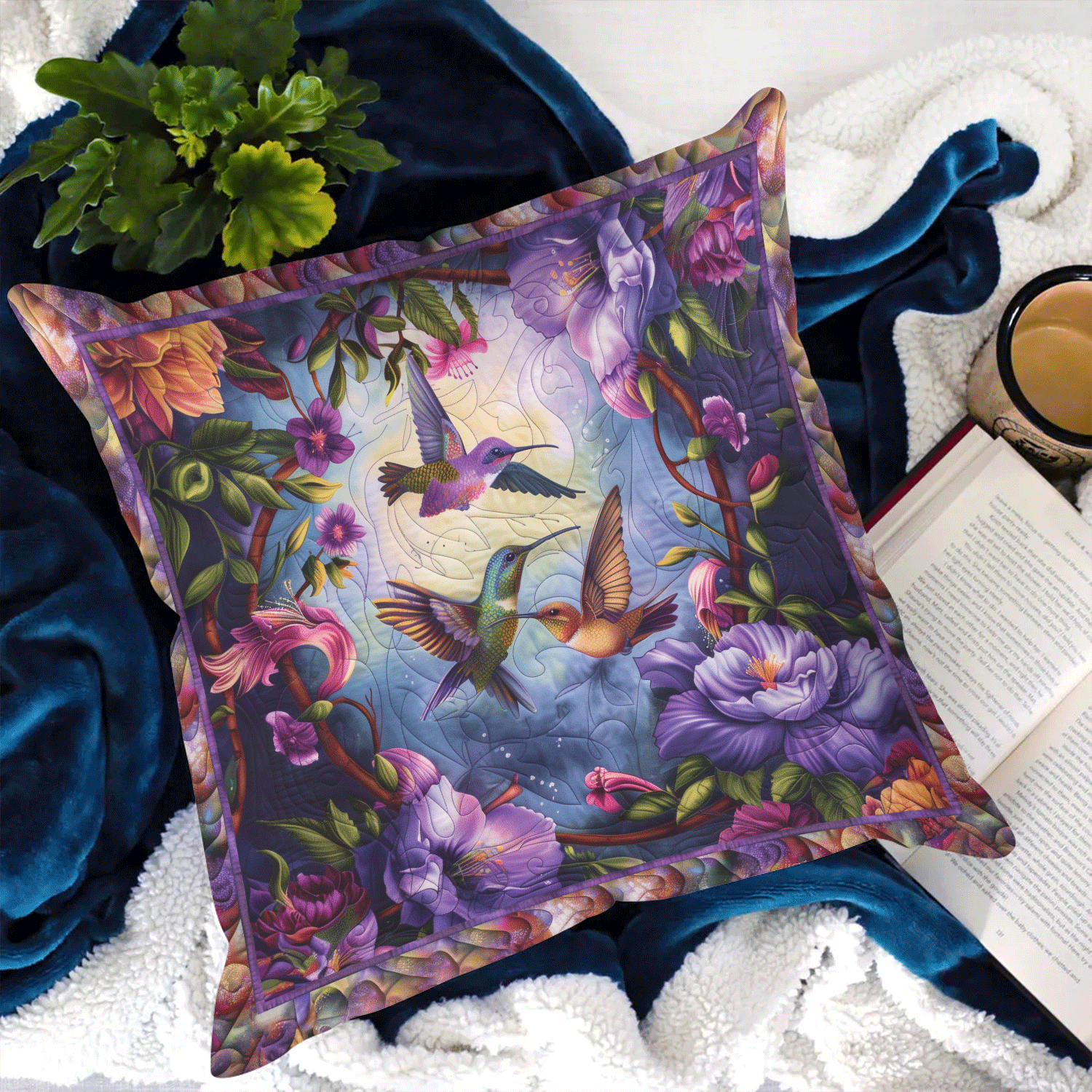 Dreamy Hummingbirds Quilted Pillow Case NCU0TH2961
