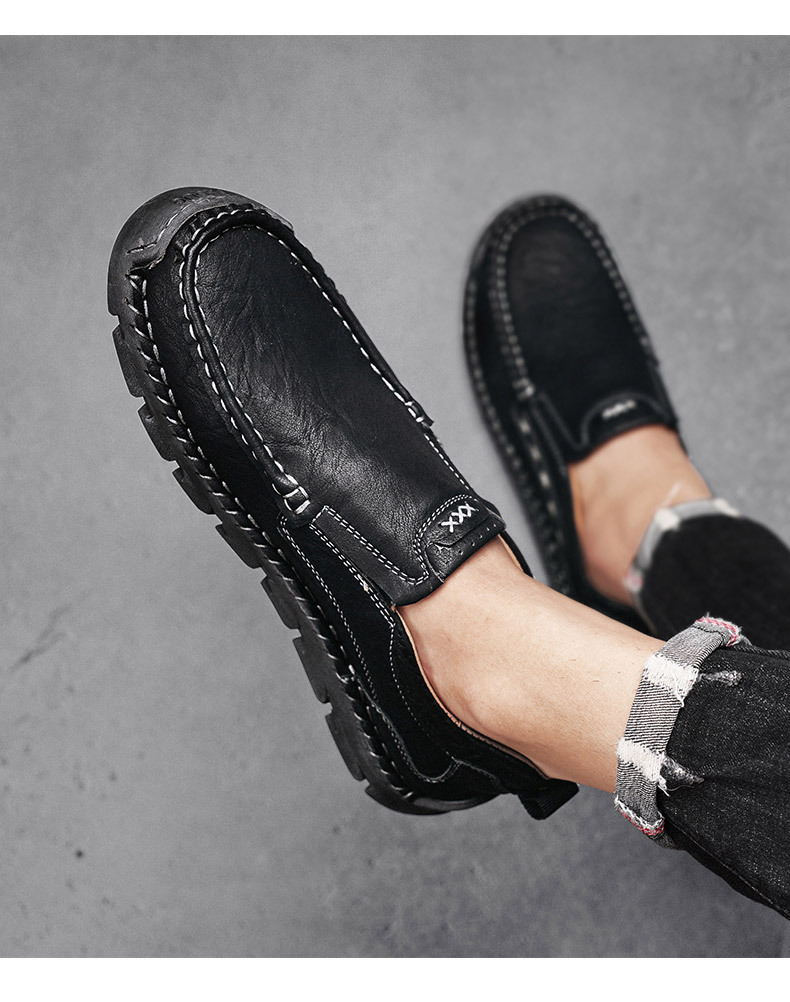 Crafted with a cow leather upper and breathable perforated design, these slip-on shoes keep your feet cool and dry. The flexible elastic opening ensures an easy fit while providing a secure, comfortable feel. The durable rubber outsole offers excellent cushioning, absorbing shock with each step. Paired with breathable, shock-absorbing insoles, they provide all-day comfort and support, making them perfect for work, travel, or even as home slippers. Ideal for any occasion or terrain.
