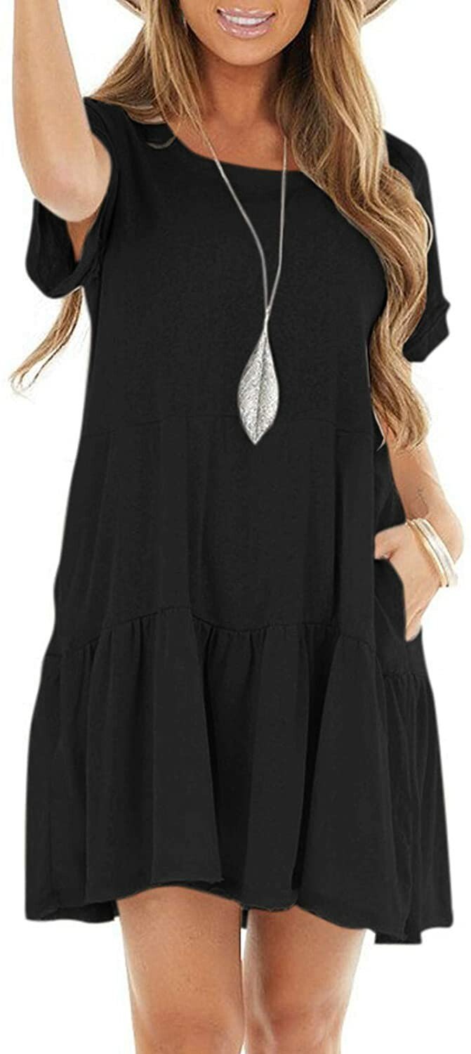 🎥 Name: Round neck short sleeve large hem mid-length dress