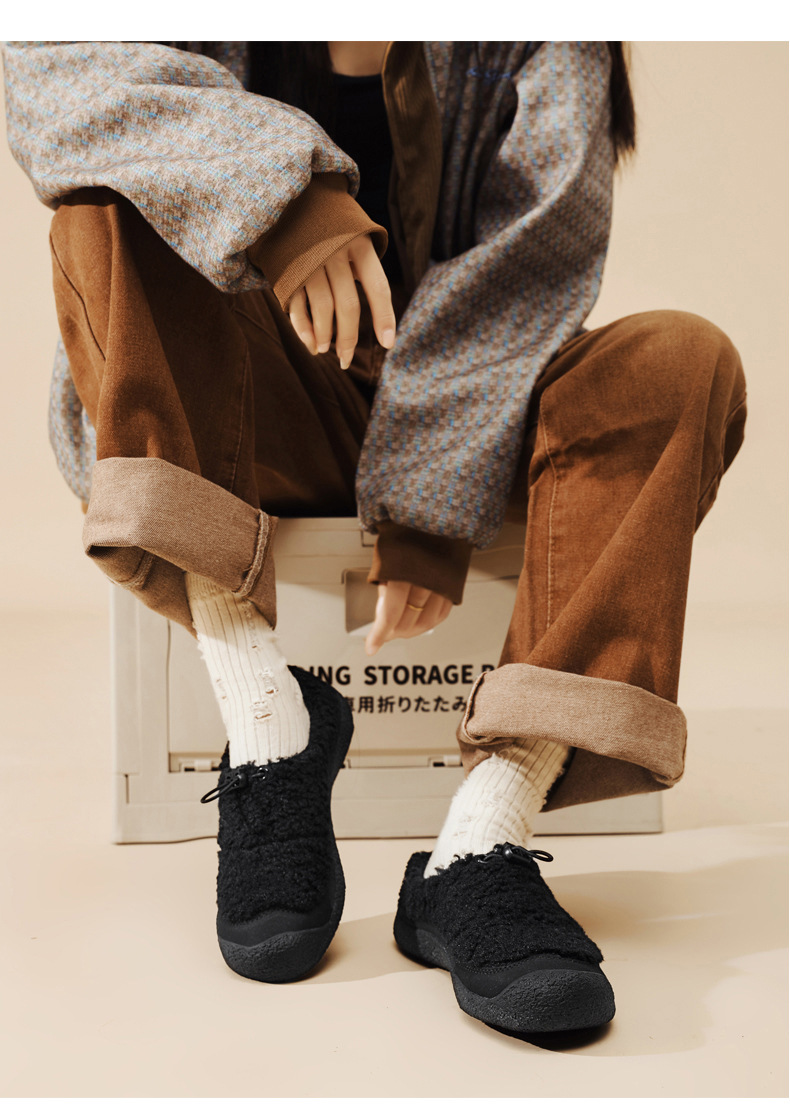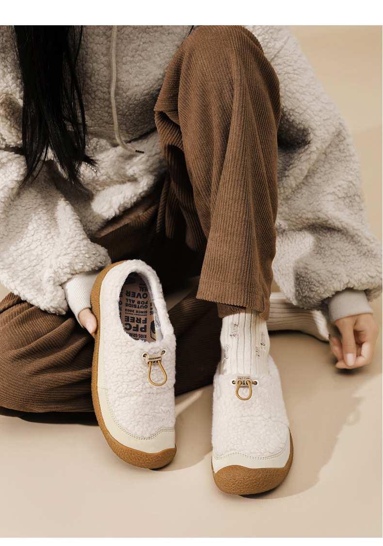 Featuring the viral "lamb-hoof" silhouette with a contrasting rubber toe cap, these shoes add a cute, celebrity-approved touch to your casual winter outfits. The adjustable drawstring ensures a snug, customized fit.