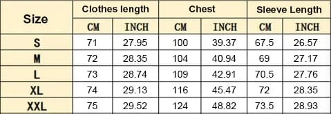 - Size chart: